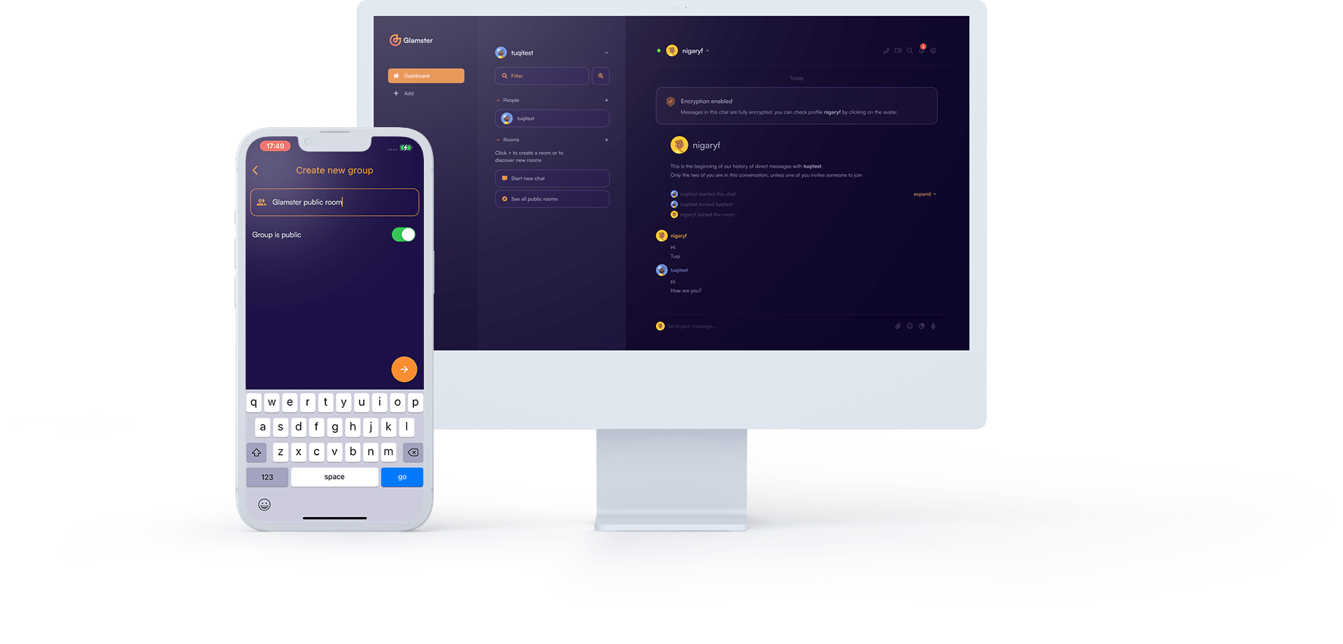 Encryption Key Sharing with desktop Pair your mobile Glamster app with the Glamster desktop messaging app seamlessly.